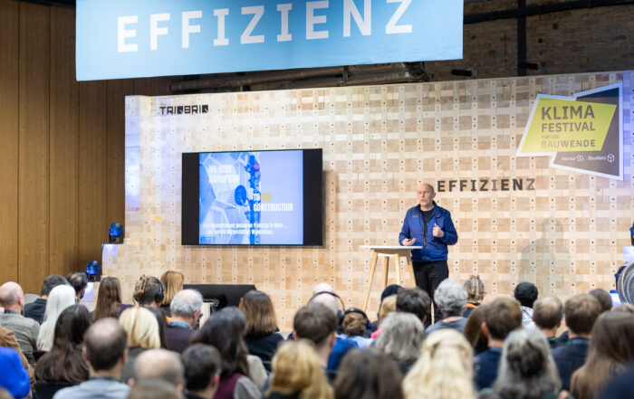 Künstliche Weidenbäume, ein versunkener Konzertsaal und ein dekonstruiertes Bauernhaus – Peter Haimerl liefert mit seinen Entwürfen einprägsame Bilder und viel Gesprächsstoff. Auf dem Klimafestival 2025 sprach er nun selbst. Eingeladen vom Informationszentrum Beton stand er auf der Bühne und stellte das 2024 fertiggestellte Wabenhaus vor, das er zum Bausatzsystem „Mamawabe“ weiterentwickelte. „Wohnen neu denken“ war der Titel des Vortrags. [...]