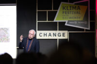 Prof. Dietmar Eberle hielt den Abschlussvortrag des Klimafestivals in Berlin und präsentierte zentrale Gedanken zur nachhaltigen Architektur.