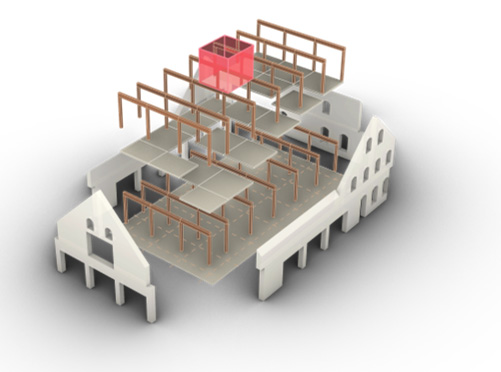 Holztragwerk im entkernten Bestand: Standardisiertes Sanierungssystem von navou