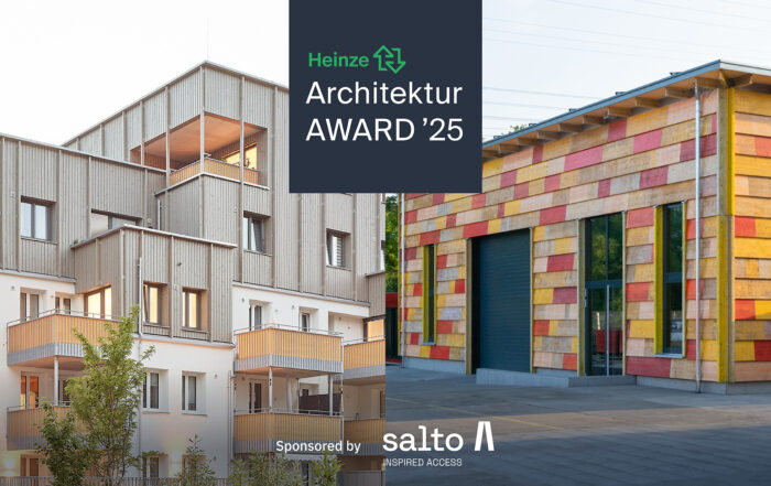 Der Heinze ArchitekturAWARD 2025 setzt seinen Schwerpunkt erneut auf den Bauwandel und damit auf nachhaltige Architektur. Heinze sucht richtungsweisende Bauten, die die Herausforderungen unserer Zeit auf vorbildliche Weise meistern. Prämiert werden Projekte, die innovative Lösungen für einen verantwortungsvollen Umgang mit Ressourcen aufzeigen und Emissionen vermeiden – ohne dabei Ästhetik, Funktionalität oder Flexibilität einzubüßen.