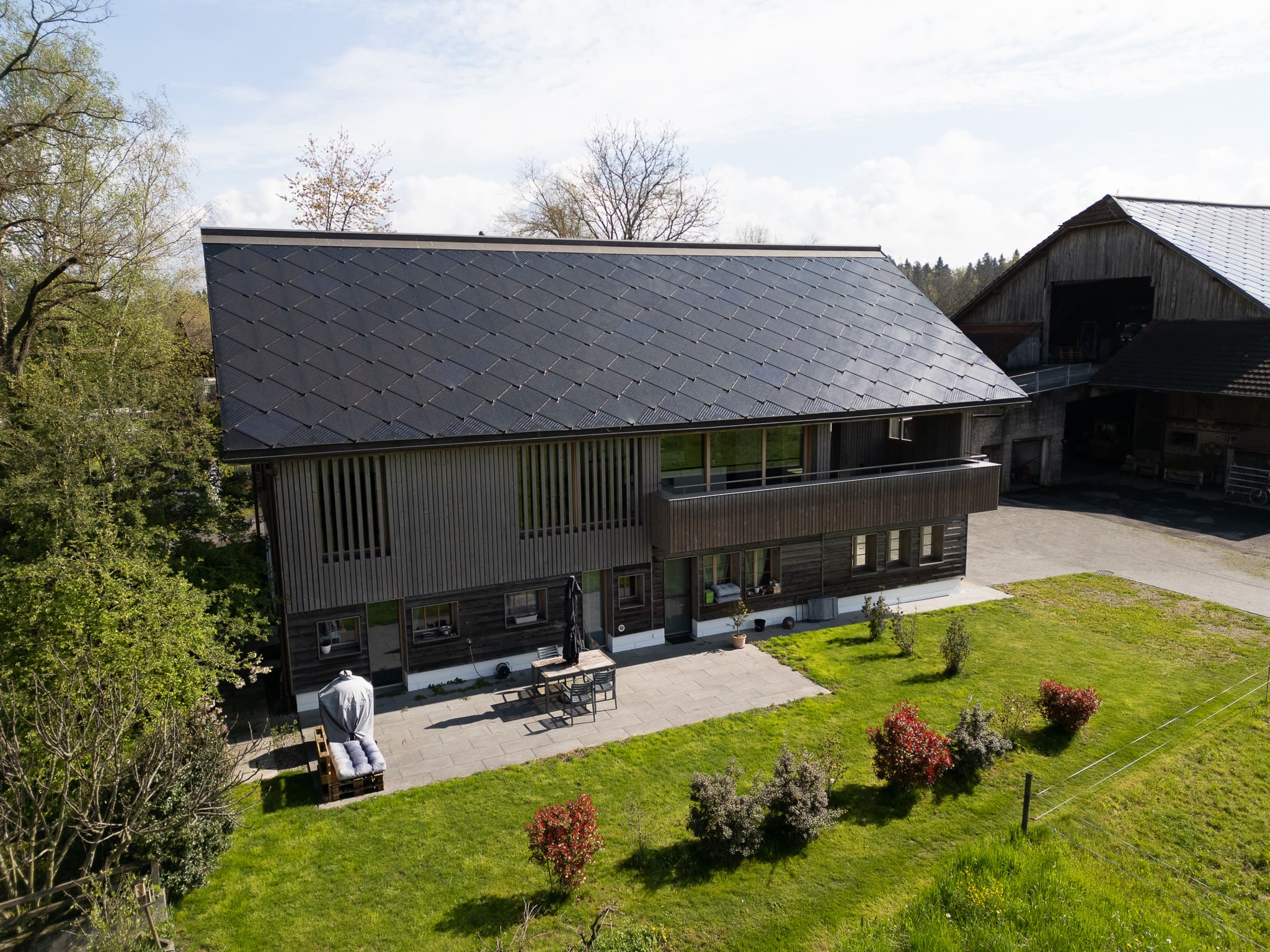 Am Ufer des Zugersees in der Schweiz steht eine Scheune aus den 1940er Jahren. Ihr Besitzer, Hanspeter Knüsel, wollte die Dachfläche energetisch nutzen. Ein auf den ersten Blick naheliegender Schritt, der sich jedoch als kompliziert erwies: Der Hof liegt in einem durch das Bundesinventar der schützenswerten Ortsbilder (ISOS) geschützten Gebiet. Konventionelle Solarmodule kamen damit nicht in Frage.