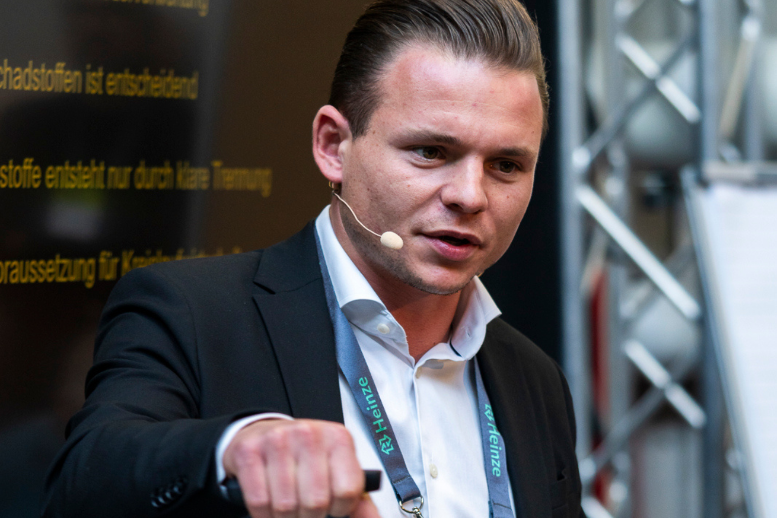 Mathias Heerman sitzt nicht nur im Vorstand des Deutschen Abbruchverbands, sondern führt auch ein Rückbauunternehmen. „Selektiver Rückbau dauert immer länger, das muss allen klar sein. […] Aber wir haben einen Vorteil: die technischen Mittel sind so gut wie nie“, verkündete er. Schritt für Schritt führte er das Publikum durch Erkundung, Rückbau, Aufbereitung und Wiederaufbau einer Lagerhalle. Einst gehörte sie Etex (ehemals Eternit), einem Hersteller asbesthaltiger Faserzementplatten. Heute nutzt das Rückbauunternehmen die Halle für seinen Fuhrpark.