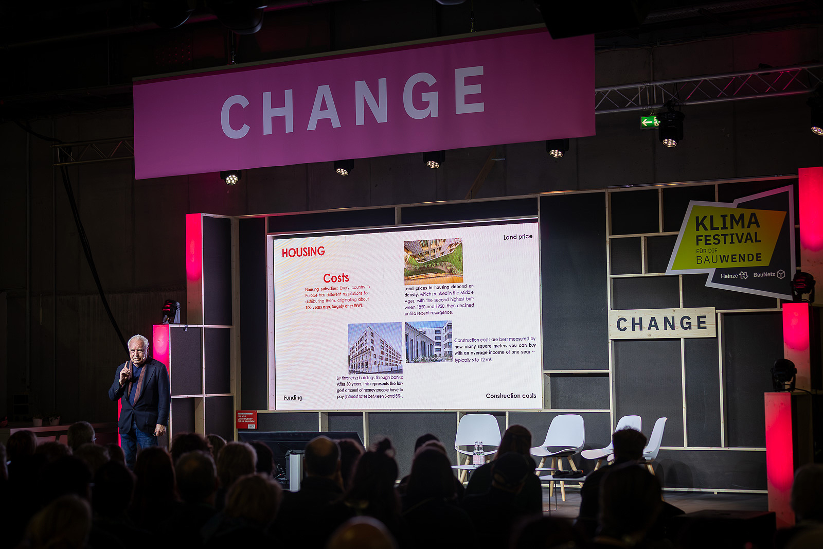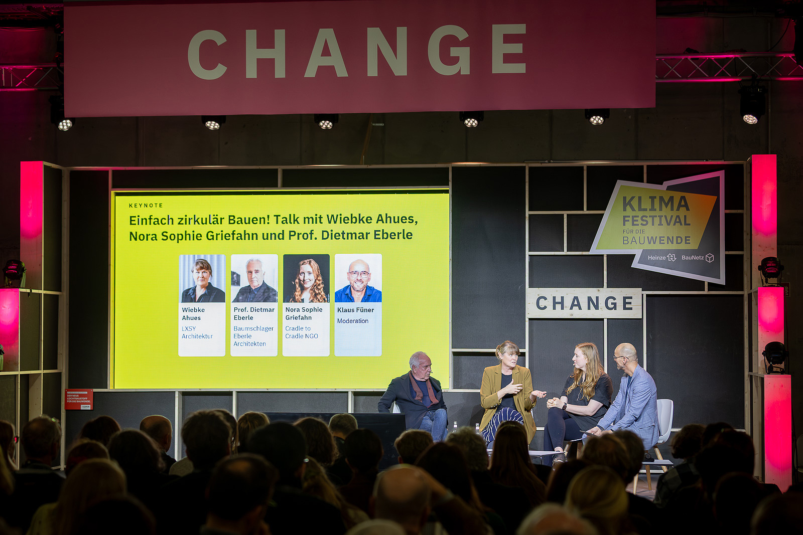 Beim nachhaltigen Bauen prallten zwei Ansätze aufeinander: Griefahn plädierte für die konsequente Umsetzung von Cradle-to-Cradle-Prinzipien und die Betrachtung von Gebäuden als Materialbanken, die einen positiven Beitrag für Umwelt und Gesellschaft leisten. Eberle hingegen favorisierte pragmatische Low-Tech-Konzepte wie „22–26“, die durch den Verzicht auf komplexe Gebäudetechnik Kosten senken und Energieeffizienz steigern.